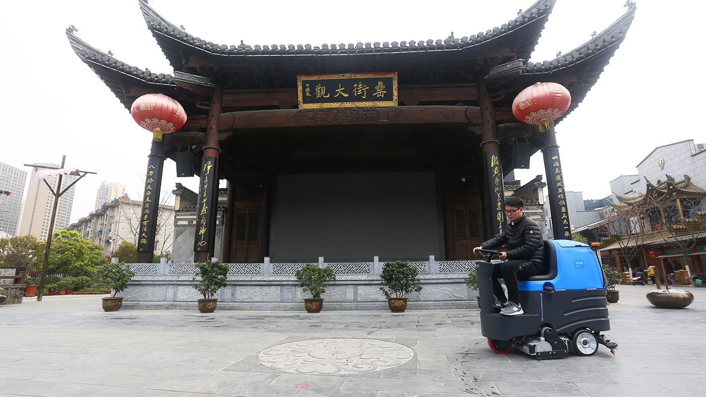 除了商家的自身保潔,大面積的公共地面衛(wèi)生,離不開高效便捷的清潔方式。容恩根據(jù)罍街的整體布局和地面類型,提供了專業(yè)的地面清潔方案——容恩洗掃一體機(jī)。