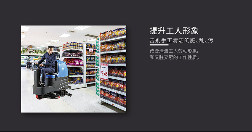 用途:駕駛式洗地車,開啟“開車做保潔“的新潮流,高效又時尚。